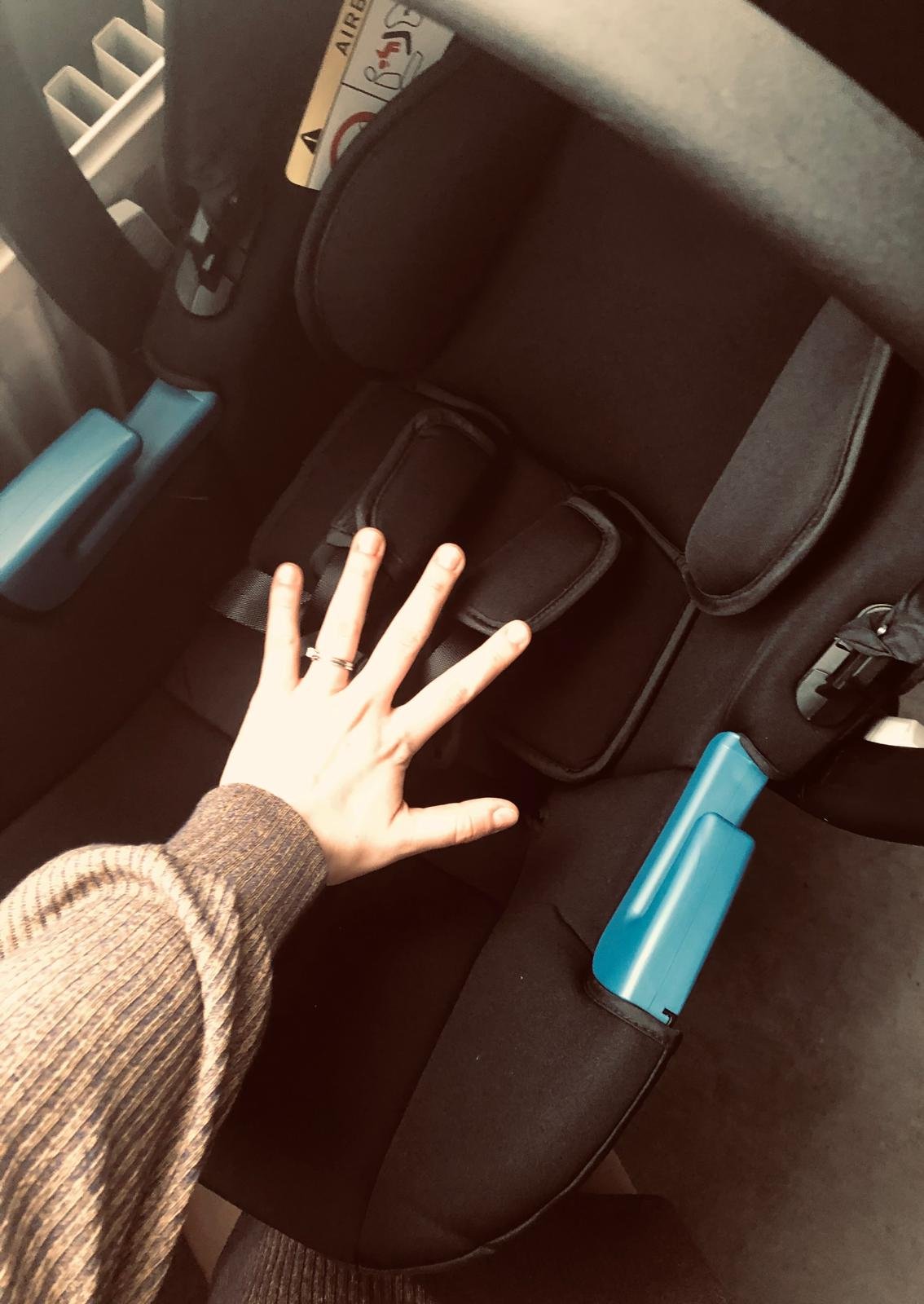 I remember seeing the seat at home for the first time and thinking how impossibly small it was. I even took a photo of my hand inside it! I couldn’t fathom that soon I’d be placing a whole person in that space.